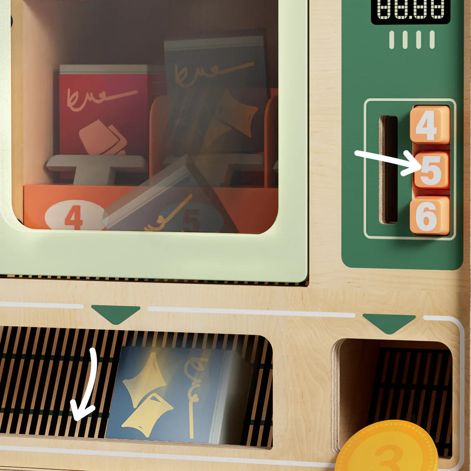 Bring hands-on fun to your child’s playroom with the Shop & Go Wooden Vending Machine Toy, a realistic pretend play set that includes colorful snacks, drink cans, and wooden coins. Designed for kids aged 3 and up, this interactive Montessori-style toy helps build counting skills, number recognition, and fine motor coordination through button pressing and coin-slot play. Made from durable wood and featuring a magnetic door, this battery-free educational toy supports STEM learning, logical thinking, and roleplay fun.