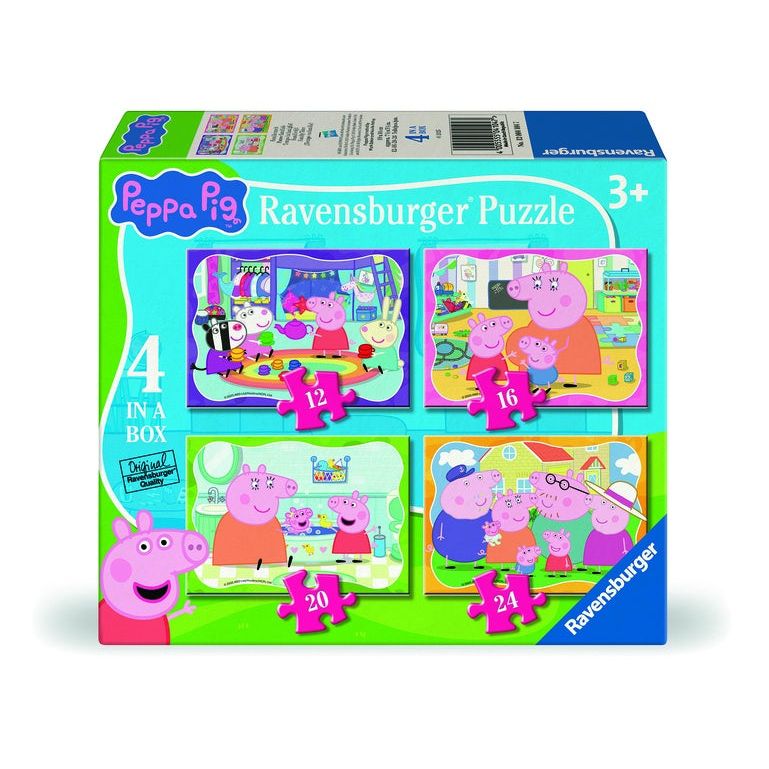 This 12, 16, 20 and 24pc 4 in a box features the iconic Peppa Pig and her wonderful family in these four bright and colourful jigsaw puzzles, this puzzle pack is a must-have for any Peppa Pig fan.