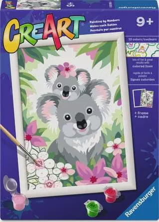 Climb aboard and watch your budding artist discover the magic of making their own piece of art with “Koala Cuties” CreArt Painting by Numbers set!