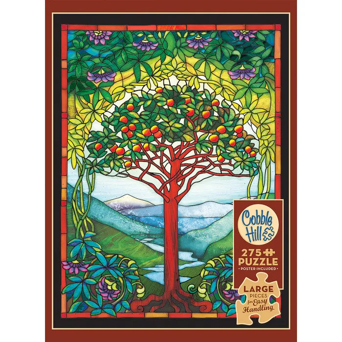 Tree of Life Stained Glass is a Cobble Hill Creations illustrated replica of Louis Comfort Tiffany's artwork. An Easy Handling 275 piece art nouveau delight with large pieces.