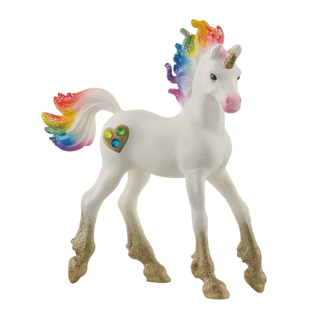 Twinkle and shine, sparkle and gleam - the Rainbow Love Unicorn Foal is glimmering with magic and enchantment! This adorable rainbow unicorn has a mane and tail streaked with radiant color. A metallic golden horn dazzles with brilliance in the morning sun. Each of the unicorn's legs is shimmering in glittery gold. Makes a perfect gift for unicorn lovers ages 5 and up.