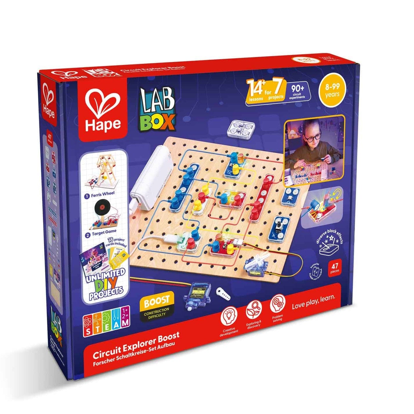 Kid's can do 7+ projects, separated in 14+ lesson plans and experiment with over 90 unique circuits.