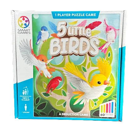 - Contains: 1 wooden tree, 5 clip-on birds, 1 booklet with 60 challenges and solutions