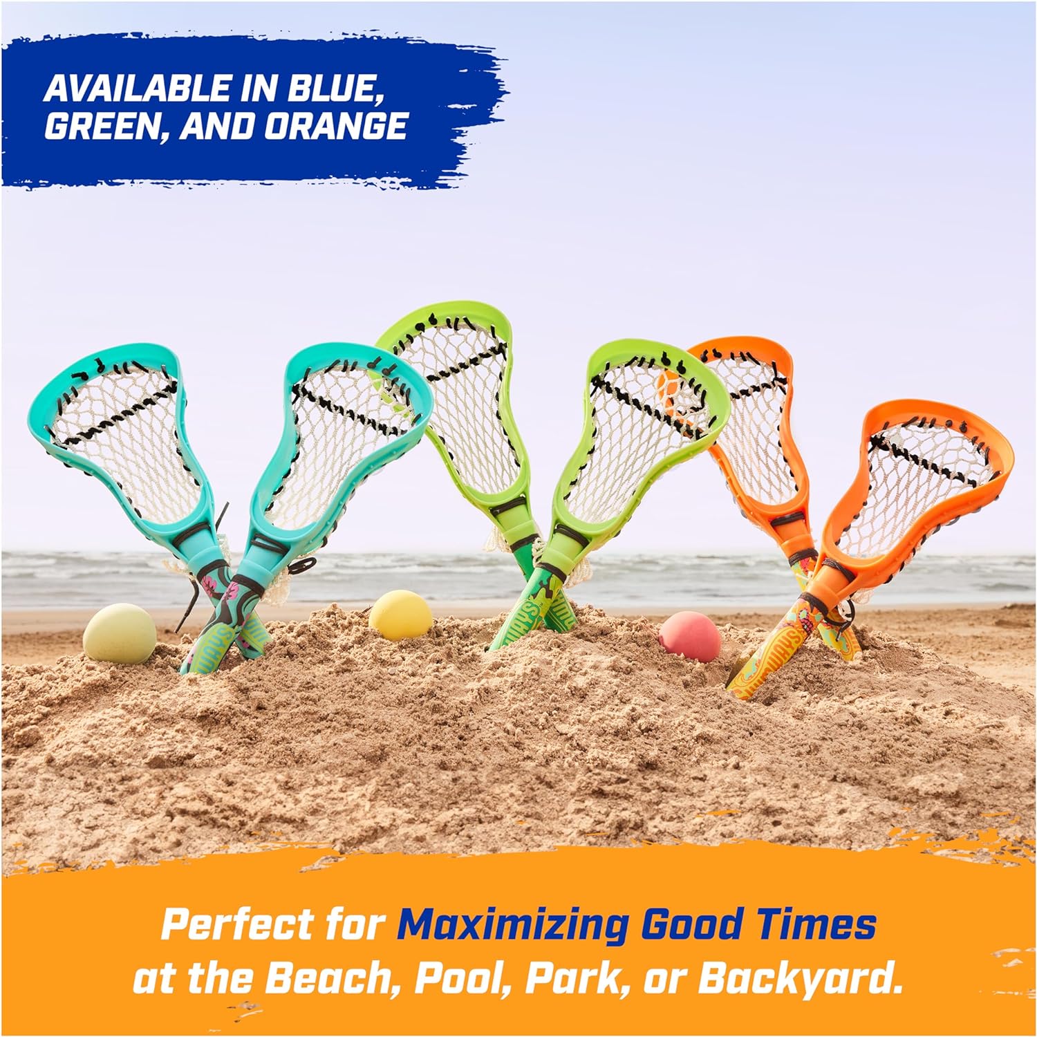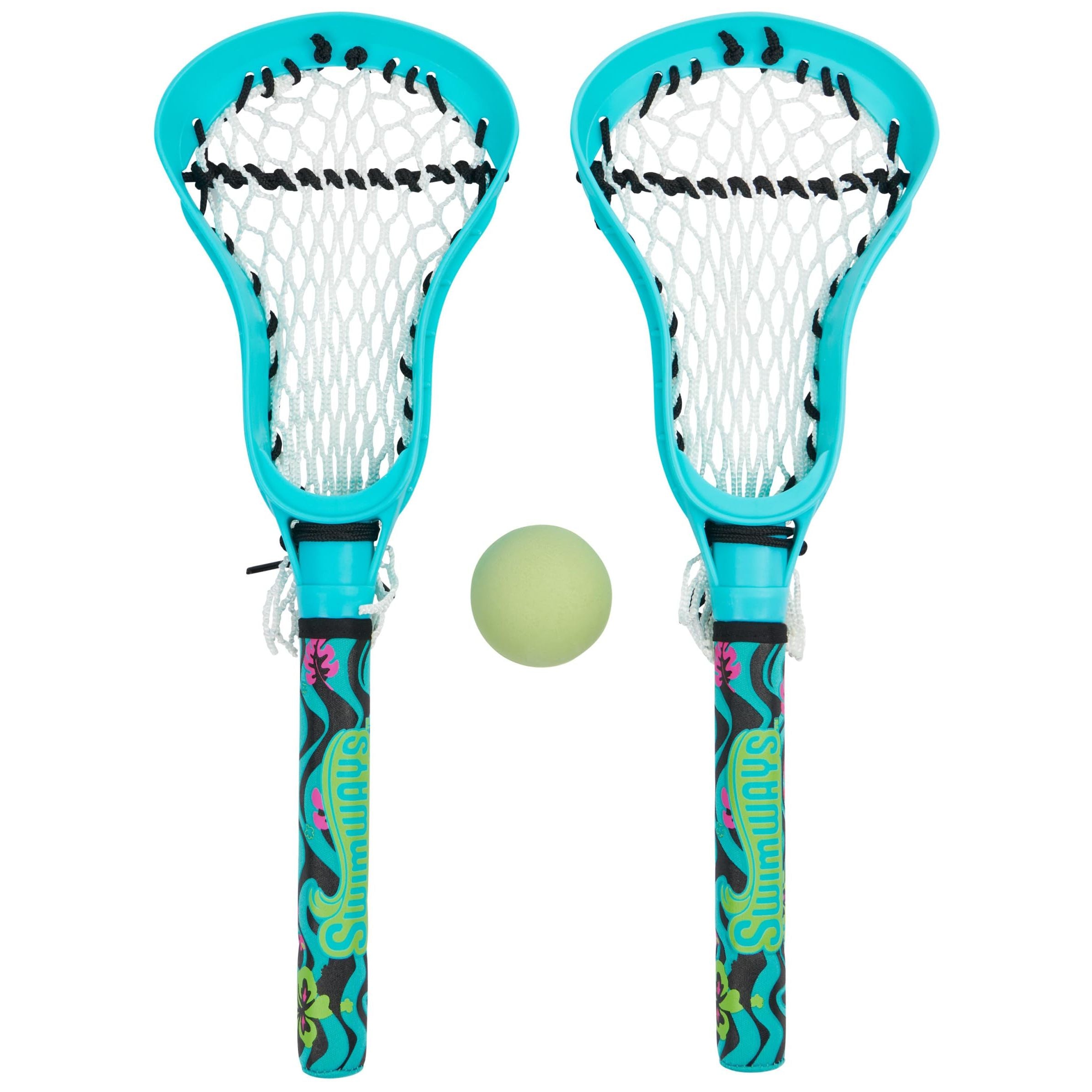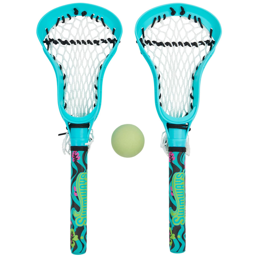 Take one of the most popular games with you wherever you go! The Swimways Hydro Lacrosse game set is great for playing lacrosse at the pool, beach or in the backyard. The soft foam handles of this fun water toy make it easy for all skill levels to catch, scoop, cradle and throw the ball. Swimways Hydro Lacrosse is an excellent choice for encouraging young players who are not quite ready for a larger lacrosse stick. Features quality construction for long-lasting play and the colorful, on-trend graphics add to the fun! Two lacrosse sticks and one ball in each set. Each set sold individually. Colors and styles may vary.