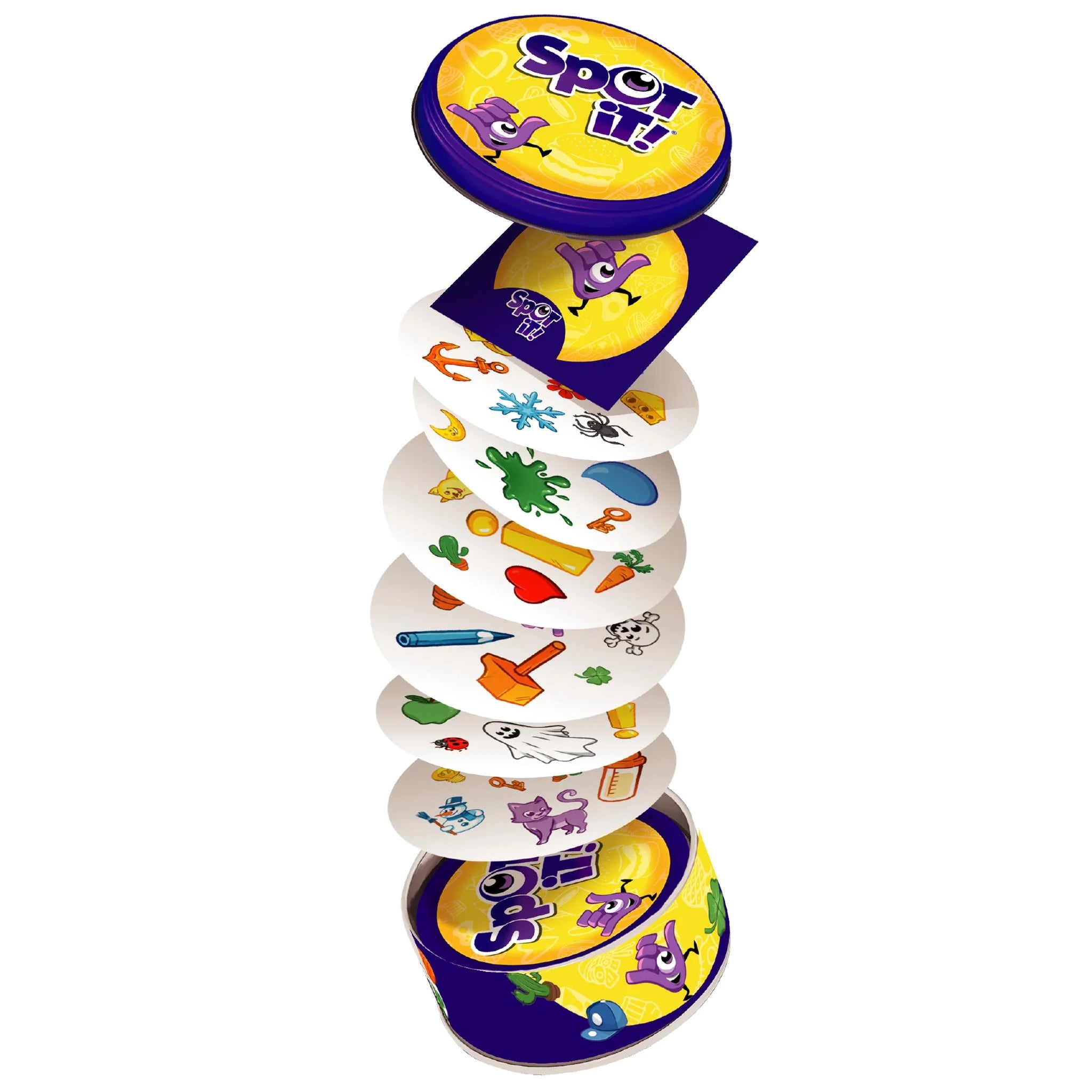 Test your observational skills and hone your reflexes with the award-winning gameplay of Spot It!, a game of lightning-fast choices for a group of two to eight players. With dozens of awards and possible versions married to elegant gameplay, Spot It! has become a global phenomenon. The game functions on a simple mechanic: fifty-five circular cards, each of which features a number of symbols and has exactly one of those symbols in common with every other card in the deck. With five distinct mini-games, you can be sure that Spot It! will be different every time you play, and because it's always your turn, there's never any downtime!