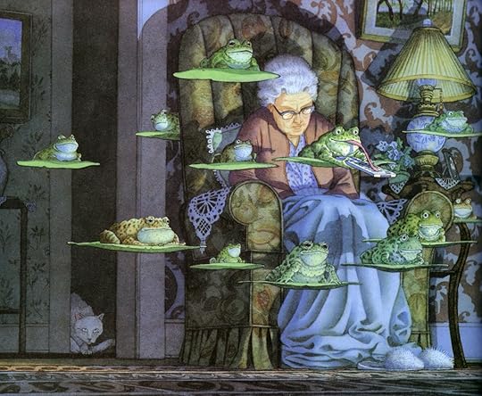 David Weisner has allowed his imagination to run free in Tuesday, and the result is a wondrous and mysterious picture book that mixes the ordinary with the unimaginable. He's merged his talent with the palette and his penchant for odd perspective to create a book where frogs careen through suburbia on flying lily pads, startling witnesses and spooking a dog. And that's just for starters. Tuesday has few words and no human protagonist, relying instead on a surreal and supernatural vision.