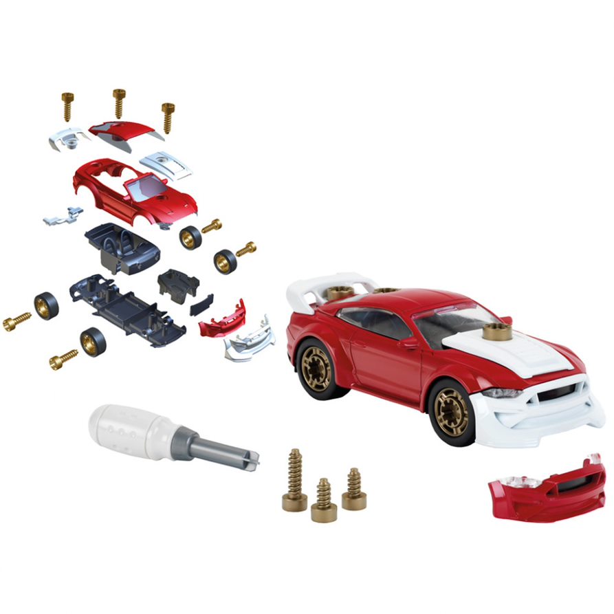 Comes with large screwdriver to put this one together, then take it apart, then make again and again!