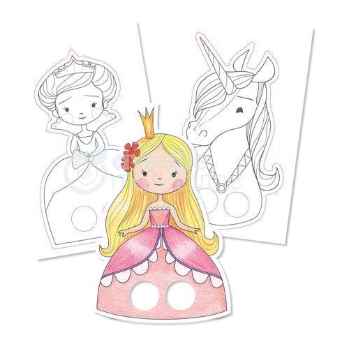 A fun notebook with 12 pre-cut finger puppets to colour. Children can thus personalize their puppets before playing, and make handsome princes and beautiful princesses come to life!