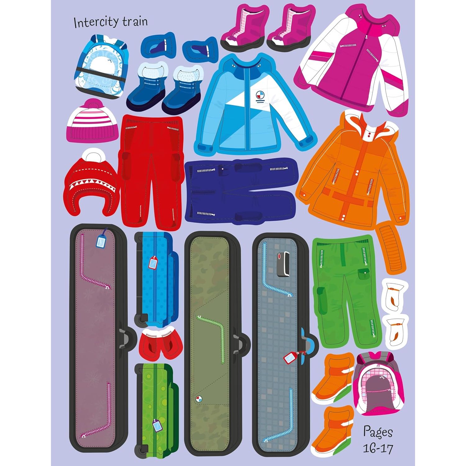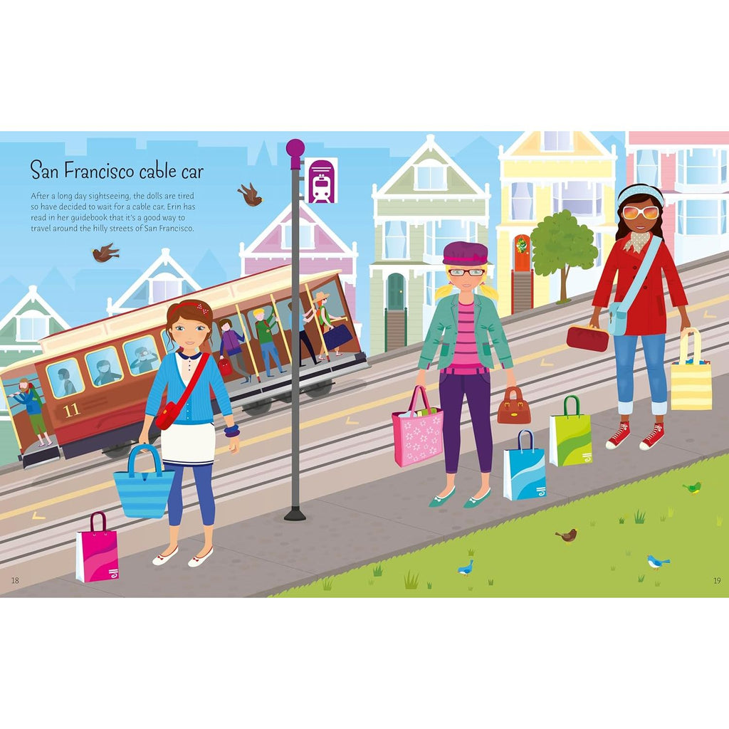 Children will love to dress the dollies as they travel around the world, checking in at the airport, boarding an inter-city train, enjoying a cycling tour, pony trekking and more. With over 250 reusable stickers of sunhats, snowsuits, suitcases, hiking boots, summer dresses and more, plus a fold-out cover to ‘park’ stickers when not in use.